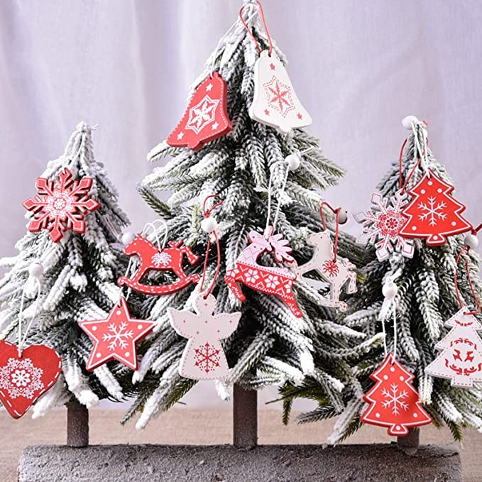 12 Pieces of 5 cm Christmas Wooden Ornaments, Used for Family Tree DIY Natural Wooden Christmas Ornaments Pendants Hanging Gifts Christmas Decorations