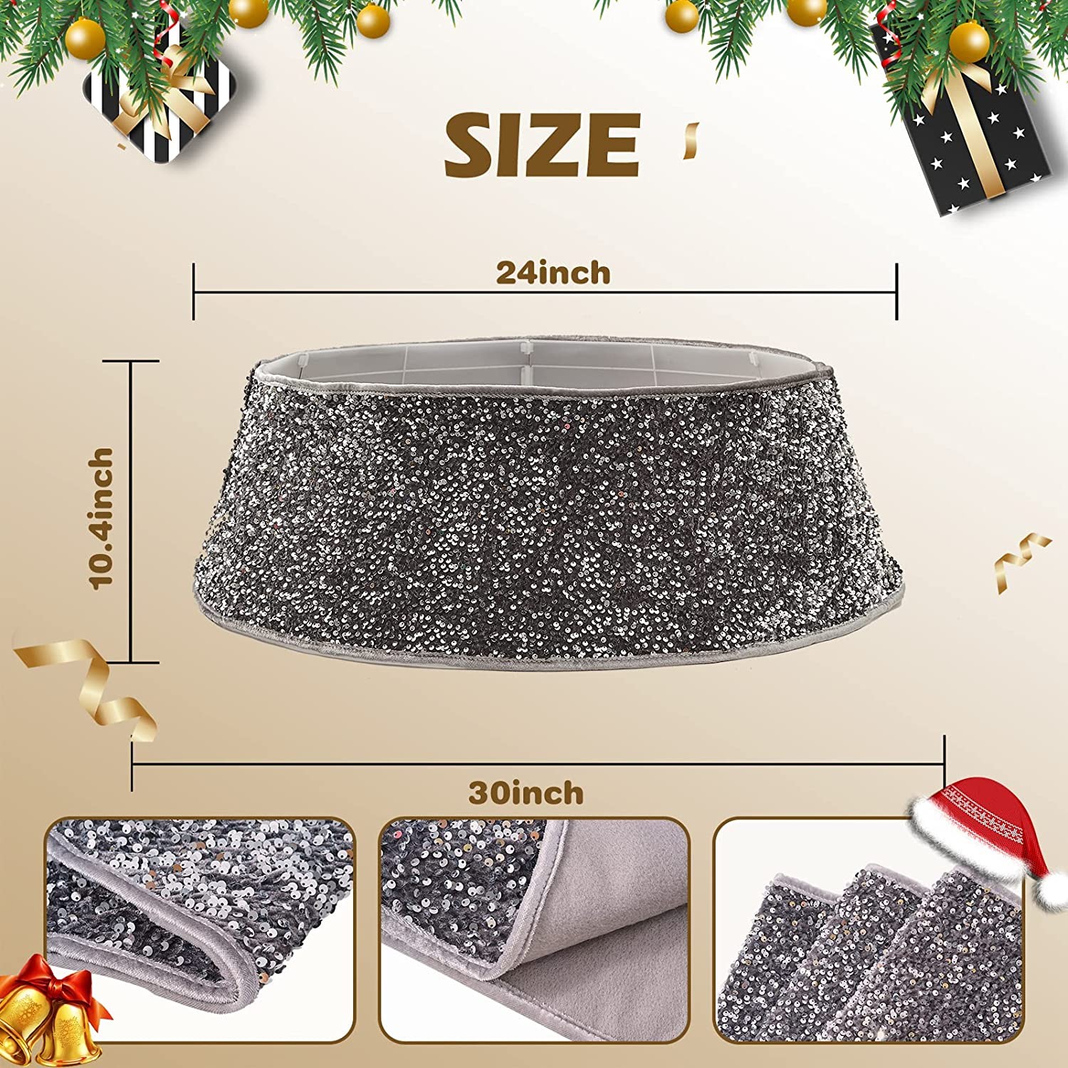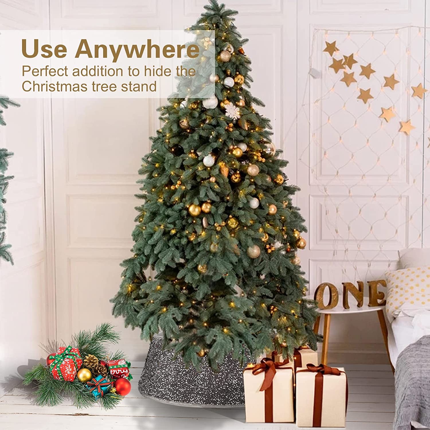 2022 Christmas Tree Skirt Gray ,Tree Collar for Chirstmas Box Base Plastic and Removable Tree Ring Decorations for Christmas Tree Ornaments Indoor Outdoor Home Holiday Decor Gift