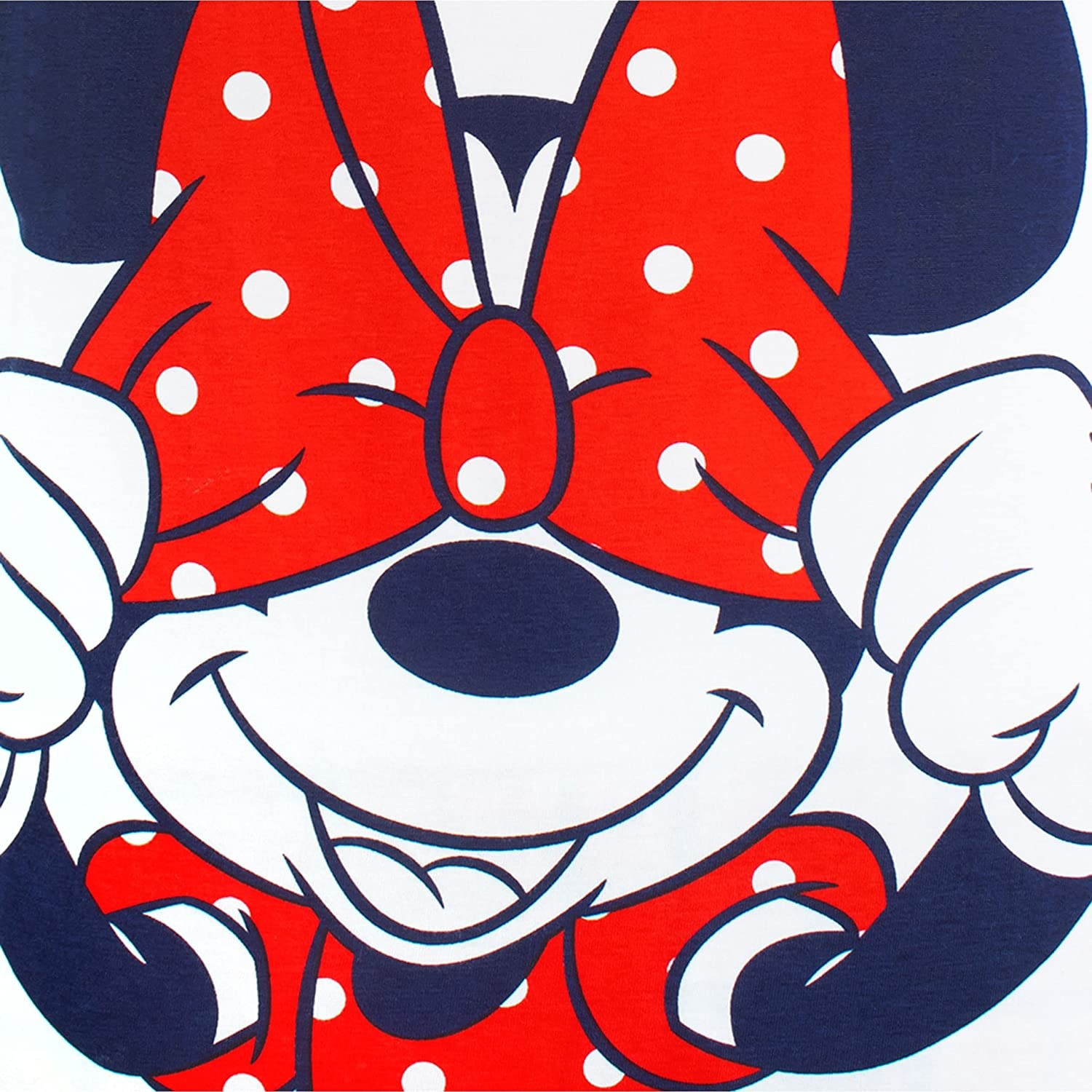 Girls Minnie Mouse Pyjamas. Get your little mouse looking stylish for bedtime in these adorable red, white and navy jammies! The long sleeve pyjama top showcases Minnie making a heart with her hands, and her name 'Minnie Mouse'. Paired with red plaid pj bottoms with an elasticated waistband and navy ankle cuffs for extra comfort. Must-have PJs for fans of the classic Disney mascot, Minnie Mouse!