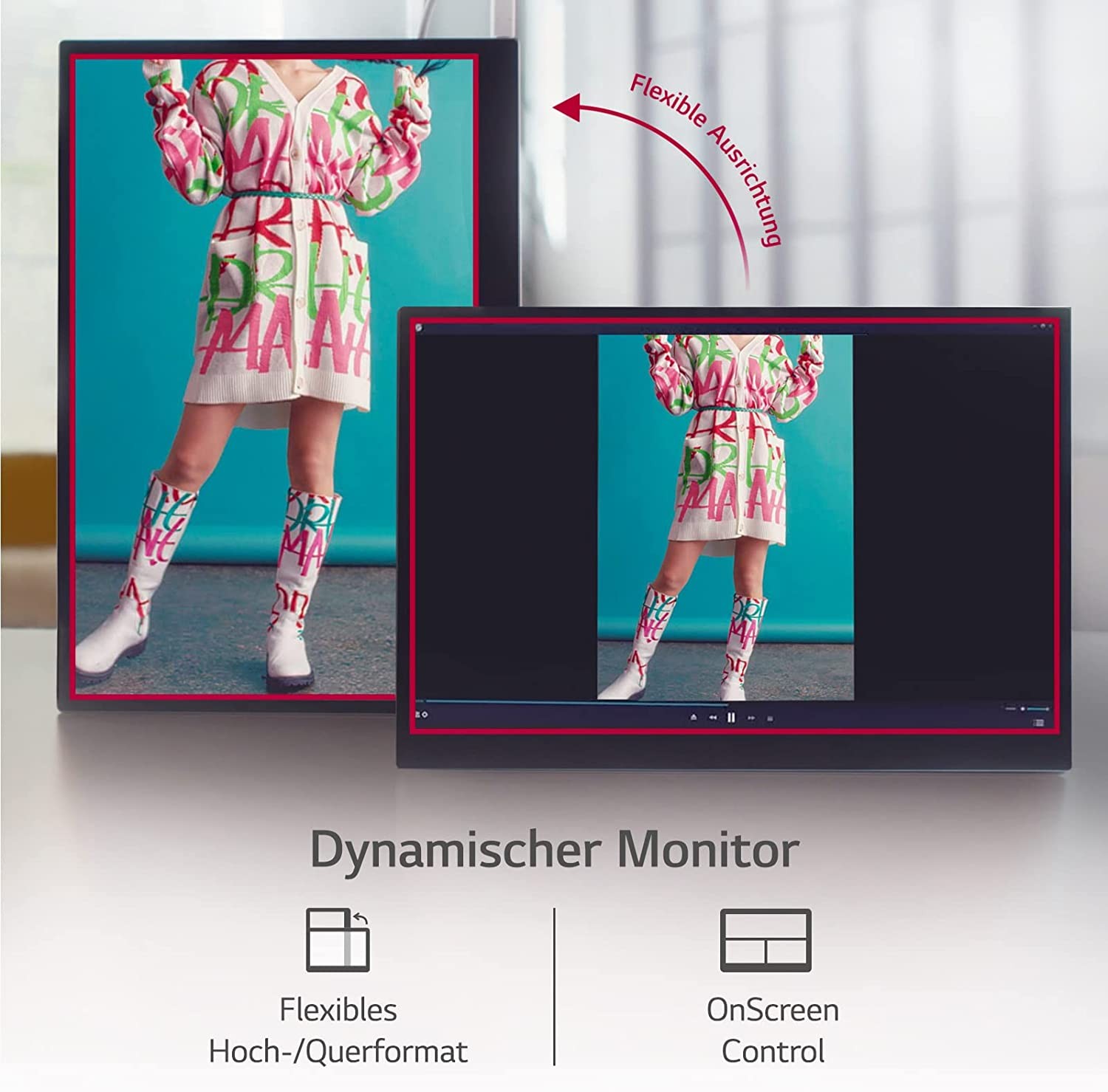 • +view can be used in both portrait and landscape orientation, allowing the screen surface to expand flexibly to suit different application situations. In conjunction with the notebook computer display, it provides a widescreen display area of ​​32:10.