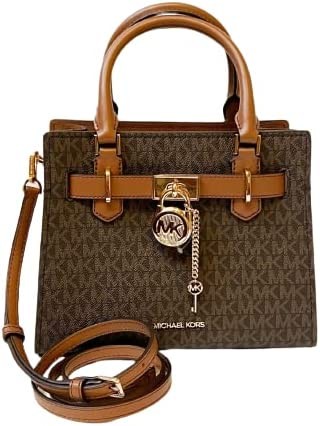 Michael Kors HAMILTON Small Satin Shoulder Crossbody Bag MK Signature Brown, Brown Pvc, NS