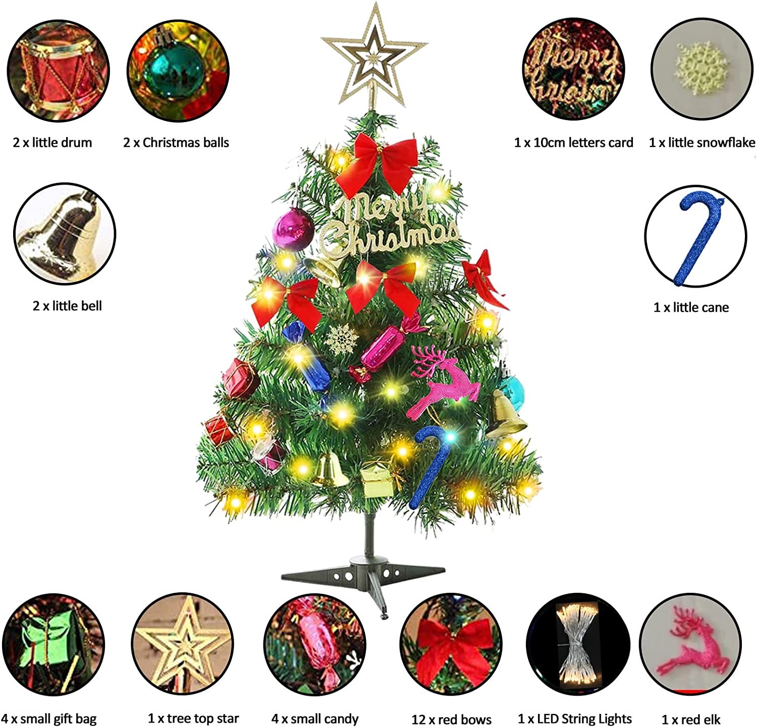 24"/60cm Tabletop Xmas Tree, Artificial Mini Christmas Pine Tree with LED String Lights & Ornaments (Xmas Tree)