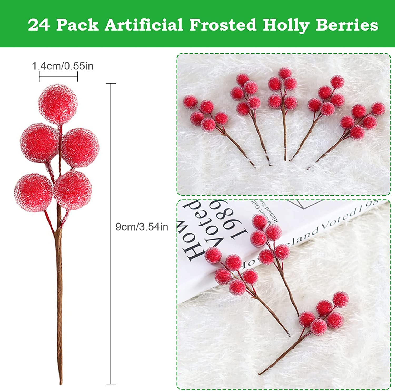 • 【CHRISTMAS CRAFT SUPPLIES】24 Pack artificial berries stems can be used together with pine cones, pine leaves or dried flowers to decorate your Christmas tree, Christmas wreath, DIY Garlands, dining tables and more, add a touch of colour to your home.