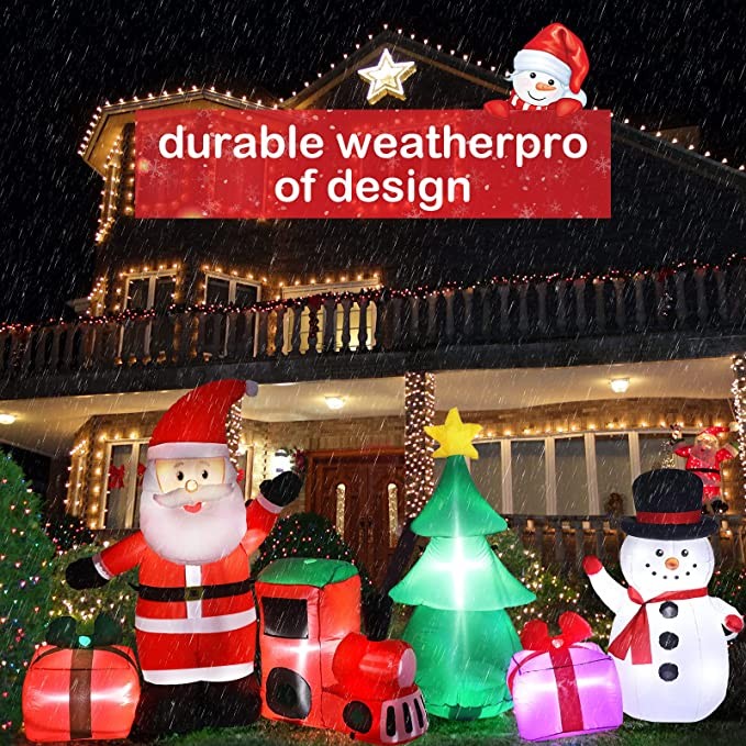 The Christmas inflatable decoration features cute shapes, which include Santa Claus, snowman, small train and tree. The Christmas inflatable decoration will attract children's attention, bringing a pleasant mood to them.