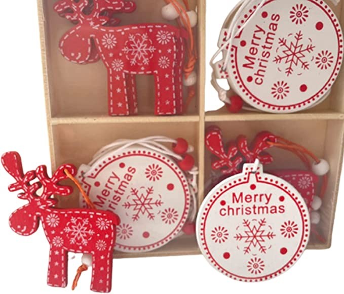 NALLY 24-Piece Set of Christmas Decorations, Wooden Christmas Small Pendants, Christmas Tree Decorations, Small Pendants, Gifts, Exquisite Wooden Boxes, Painted Pendants, Red White