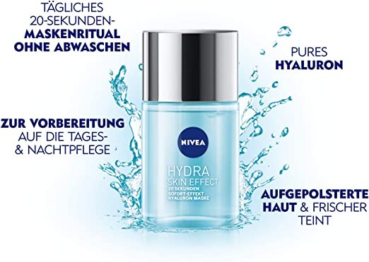 Nivea Hydra Skin Effect Instant Effect 20 Seconds Hyaluronic Acid Mask, 100ml, Morning & Night Treatment Mask with Pure Hyaluronic Acid [HA].